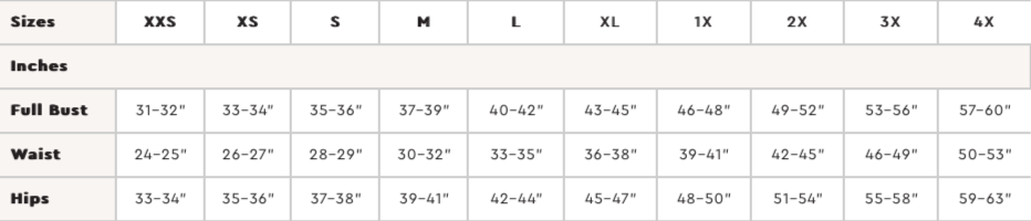 Fabric Requirements: Sizes XXS-S = 3 yd, Sizes M-1X = 3.5 yd, Sizes 2X-3X = 3.75 yd, Sizes 4X = 4.5 yd